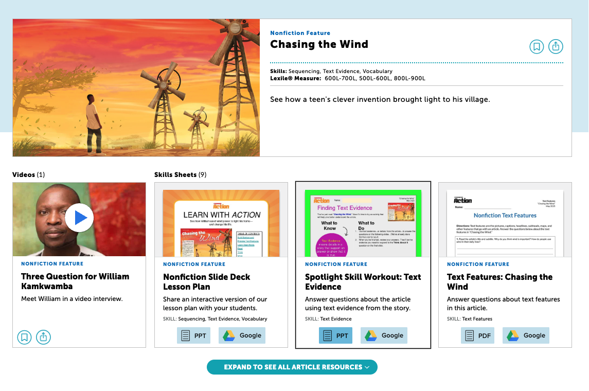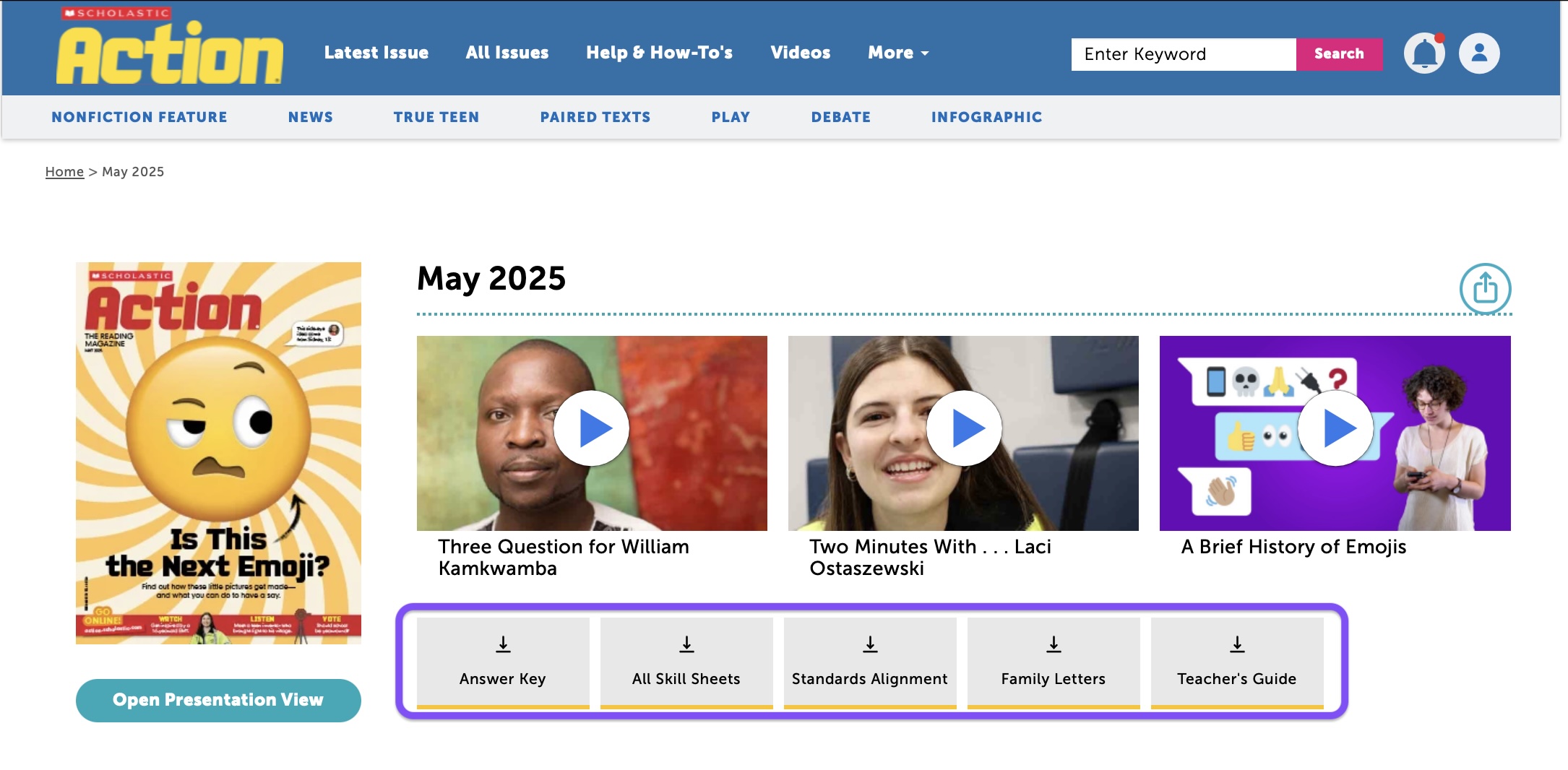 Each issue of Action comes with a wealth of resources, including engaging videos, detailed lesson plans, interactive skill-building activities, and more! Here’s help getting started.